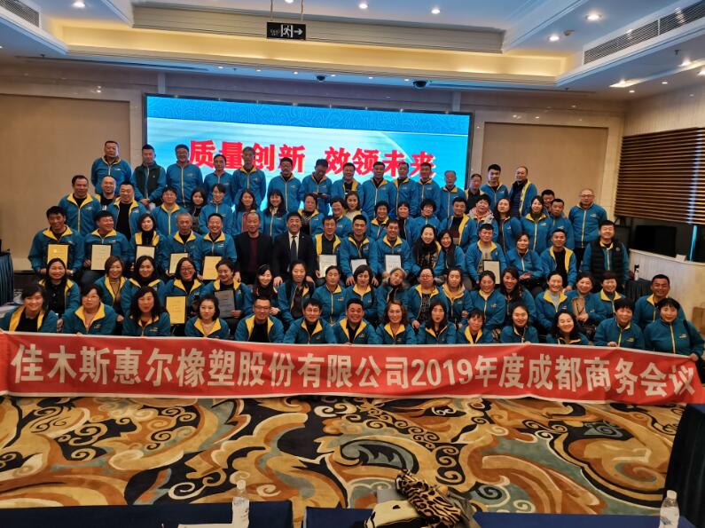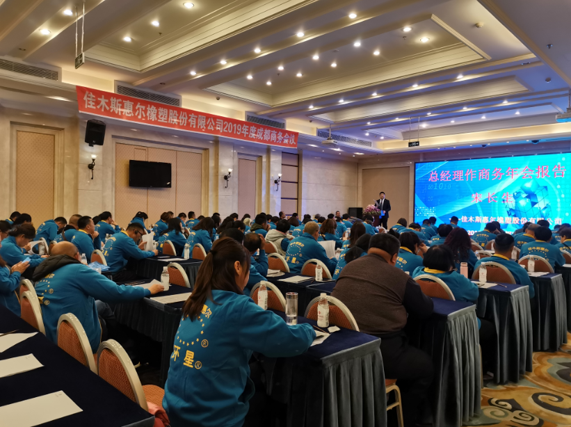 2019年11月25日,值此辭舊迎新之即,佳木斯惠爾橡塑股份有限公司2019-2020年度商務(wù)會議在四川成都圓滿召開,來自全國范圍的100多家經(jīng)銷商代表歡聚一堂,共謀發(fā)展。會議總結(jié)了2019年營銷工作,直面矛盾問題,科學(xué)預(yù)判形勢,就2020年營銷工作進(jìn)行了部署和落實,會場充滿熱烈喜慶、奮發(fā)向上的氣氛。